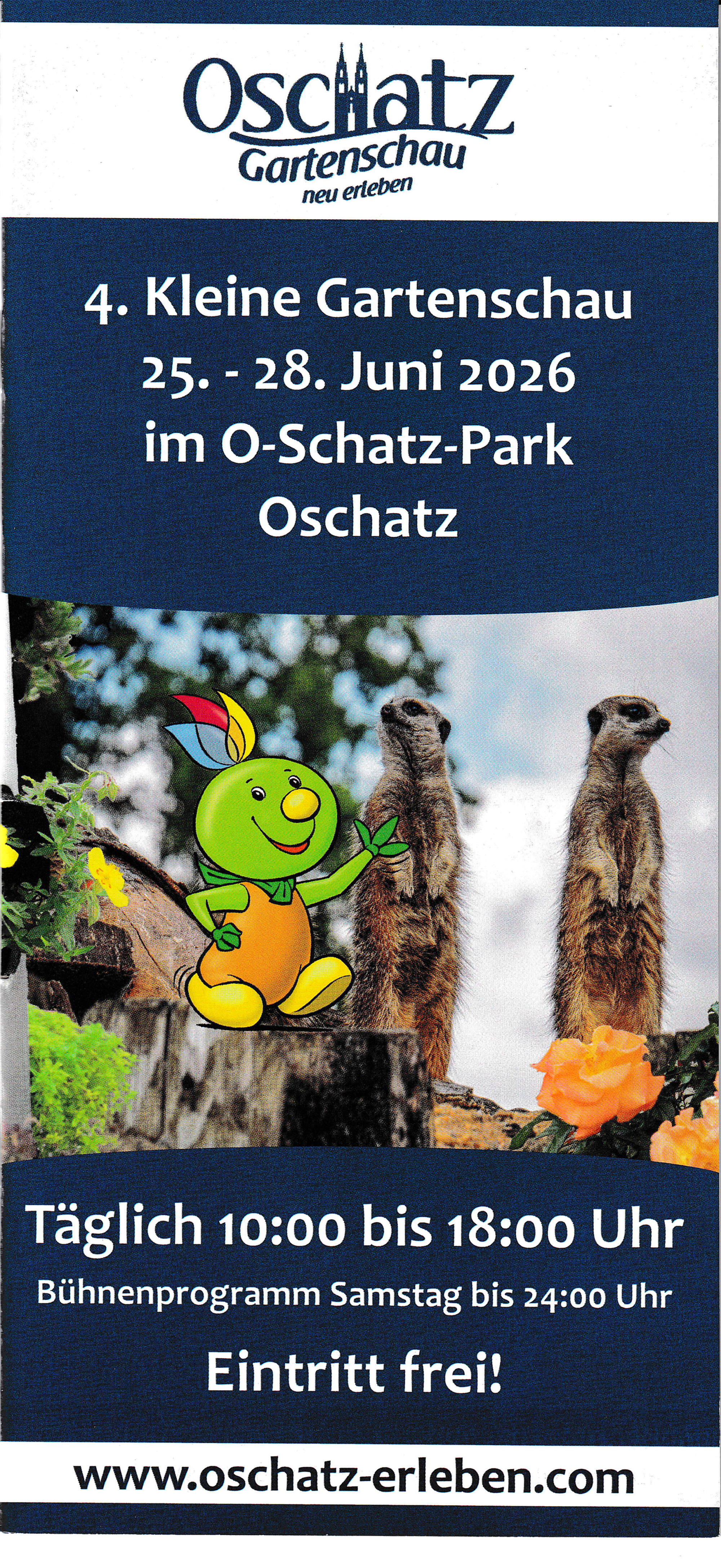 | kostenlosHerzlich Willkommen zur 4. Kleinen Gartenschau vom Donnerstag, den 25. Juni bis Sonntag den 28. Juni 2026 im O-Schatz Park!